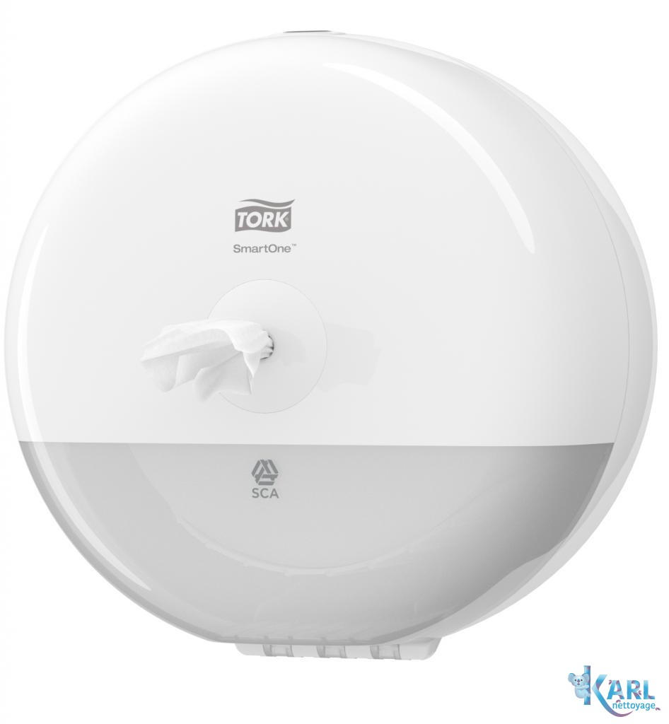 Tork SmartOne® mini T9 est un distributeur pour papier toilette rouleau, robuste, en design centré, distribue une feuille protégée à la fois pour aider à améliorer l’hygiène, résister au vandalisme et réduire la consommation – jusqu'à 40%.