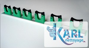Les outils sont accrochés par devant. In Livrable en 2 modèles (3 ou 6 attaches).